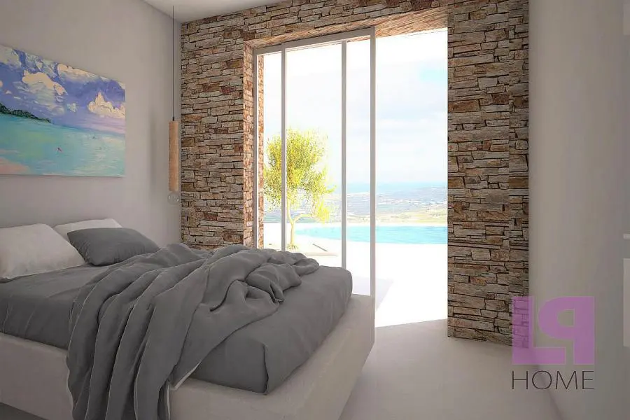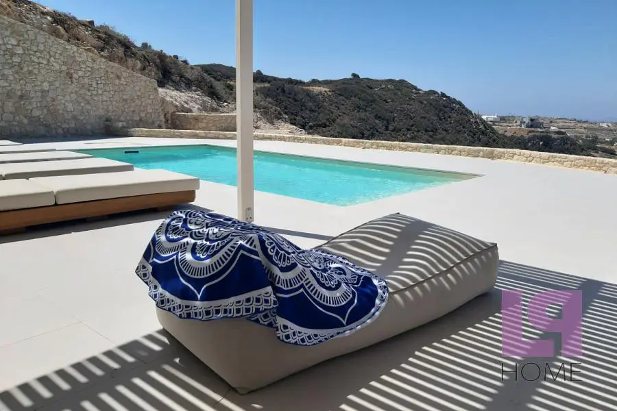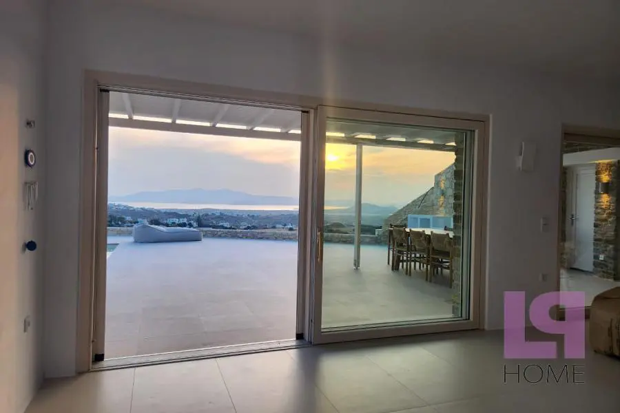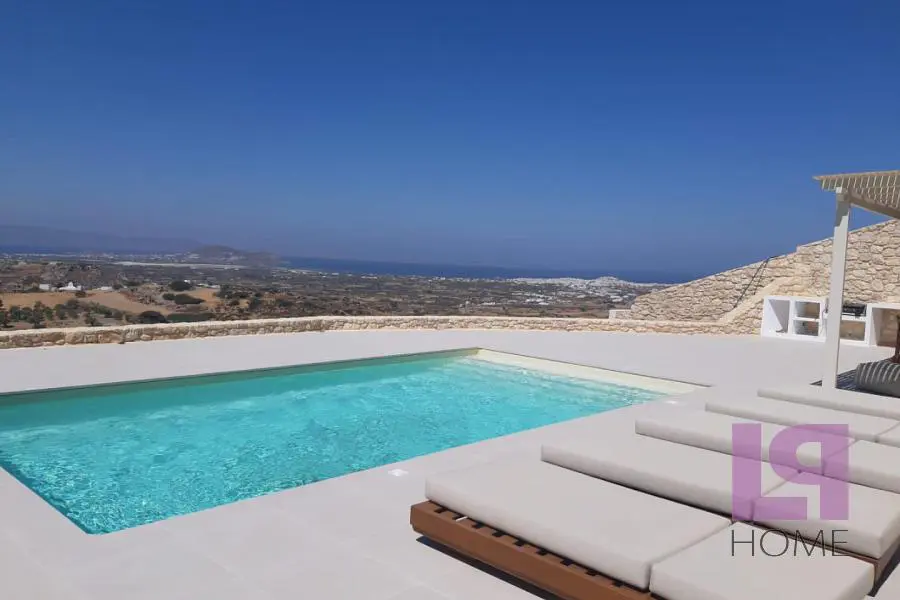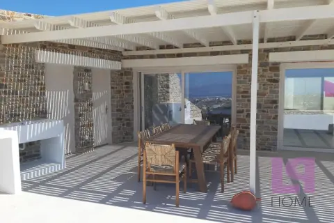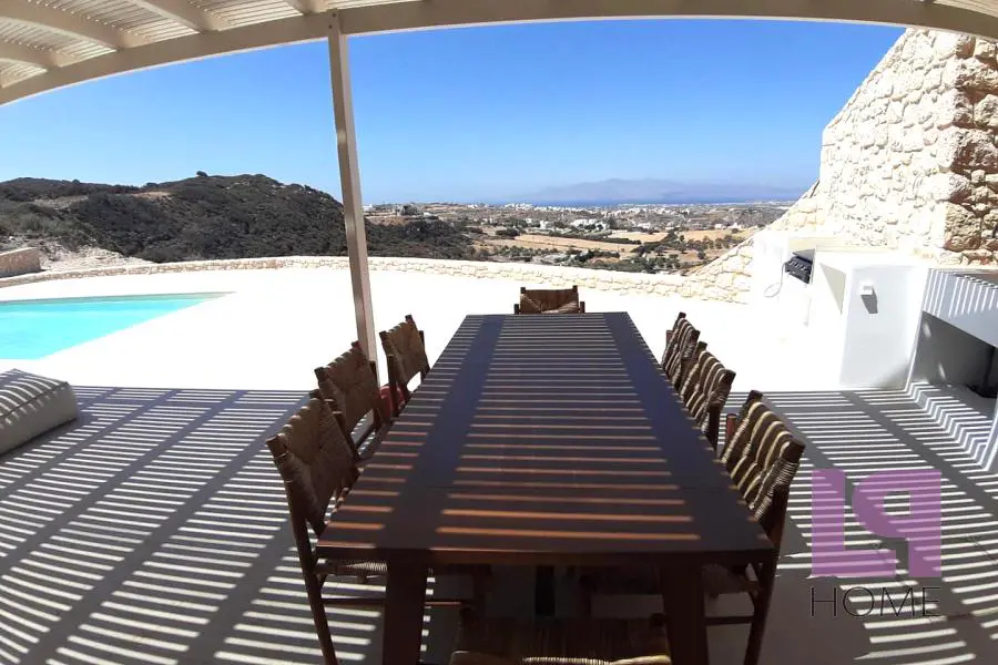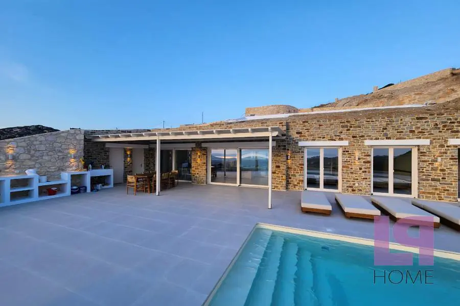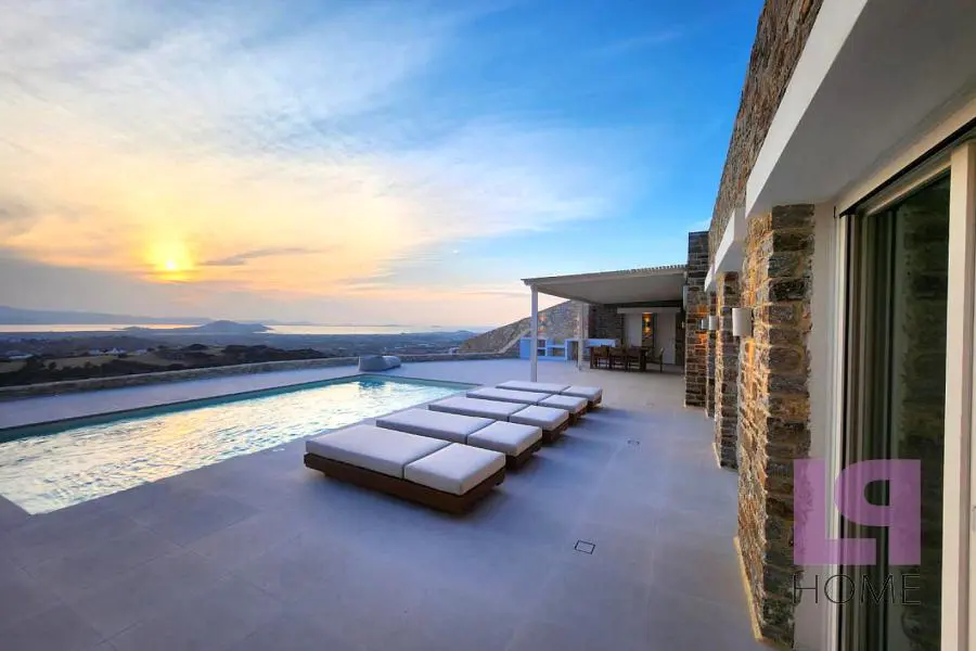 Μοναδική Βίλα σε συγκρότημα 5 ανεξάρτητων κατοικιών οικολογικού σχεδιασμού με απίστευτη, πανοραμική θέα στο Αιγαίο, τη Χώρα της Νάξου και τη Στελίδα, καθώς επίσης και το νησί της Πάρου. Πλήρως ενσωματωμένες στο φυσικό περιβάλλον και σύμφωνα με την παραδοσιακή τεχνική κατασκευής στάνης των ελληνικών νησιών, με πράσινες στέγες πάχους 80 εκ τουλάχιστον και φυσικό αερισμό, καθώς ο αέρας θα κυκλοφορεί ανάμεσα στο αίθριο και το εμπρόσθιο τμήμα, εξασφαλίζεται η πλήρης ηχομόνωση και θερμομόνωση (εφέ «κελάρι κρασιού»). Παράλληλα, το περιβάλλον διατηρείται ανέπαφο, καθώς οι βίλες βρίσκονται στο επίπεδο του εδάφους, ενώ η θέση τους στο οικόπεδο των 9000 τ.μ. ακολουθεί τη φυσική κλίση του εδάφους εμποδίζοντας την οπτική επαφή μεταξύ τους. Το πλησιέστερο χωριό βρίσκεται στα 700μ. περίπου ενώ οι διάσημες παραλίες λευκής άμμου στα 4χμ και η Χώρα στα 5χμ. Η βίλα διαθέτει 4 υπνοδωμάτια, άνετο σαλόνι με χώρο τραπεζαρίας και τζάκι με θέα στην ιδιωτική πισίνα και τη θάλασσα, ξεχωριστή κουζίνα, 3 μπάνια και 2 αποθηκευτικούς χώρους.