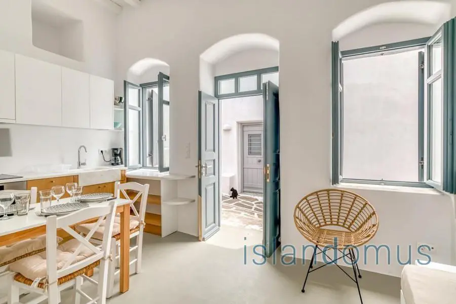 Μέσα στα γραφικά στενά του παραδοσιακού οικισμού της Μάρπησσας, βρίσκεται ένα ισόγειο δίχωρο διαμέρισμα με δύο ανεξάρτητες εισόδους εμβαδού 50τμ. σε οικόπεδο 71τμ. Είναι πλήρως ανακαινισμένο, επιπλωμένο, εξοπλισμένο και διαθέτει κλιματισμό. Αποτελείται από ένα χώρο καθιστικού-τραπεζαρίας-κουζίνας , ένα υπνοδωμάτιο και μπάνιο. Οι χώροι διαθέτουν παράθυρα στην πρόσοψη. Υπάρχει μικρή αυλή και μια εξωτερική σκάλα προς το δώμα , το οποίο και διαθέτει εξαιρετική πανοραμική θέα. Στη Μάρπησσα υπάρχει οργανωμένη αγορά καθ' όλη τη διάρκεια του χρόνου, αρκετές προτάσεις για φαγητό και πλούσια πολιτιστική δραστηριότητα με έμφαση σε θέματα αρχιτεκτονικής, λαογραφίας, εικαστικών κλπ. Το μουσείο γλυπτών Περαντινού, οι χαρακτηριστικοί ανεμόμυλοι της Πάρου απ' όπου ξεκινάει το μονοπάτι που οδηγεί στη μονή του Αγίου Αντωνίου, οι γραφικές πλατείες και τα πανέμορφα εκκλησάκια είναι τα highlights της περιοχής. Σε κοντινή απόσταση υπάρχει το κοσμοπολίτικο Πίσω Λιβάδι με το γραφικό του λιμανάκι, ο Λογαράς και η διάσημη παραλία της Χρυσής Ακτής. Ο οικισμός εξελίσσεται σε πόλο έλξης επενδυτών απ' όλον τον κόσμο που θέλουν να συνδυάσουν εξοχική κατοικία και εισόδημα ταυτόχρονα. Η αγορά ακινήτων στη Μάρπησσα έχει φανατικό κοινό και δημιουργείται μια κοινότητα ανθρώπων (αρχιτέκτονες, καλλιτέχνες κ.α.) που αγαπούν και σέβονται την παράδοση.