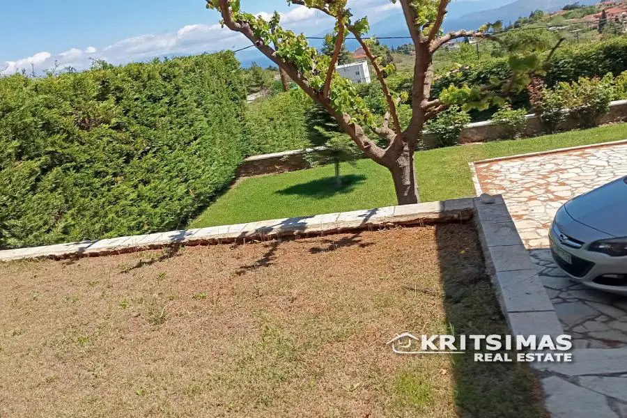 Σε πολυ καλό σημειο με θεα τον Κοριανθιακό κόλπο και το βουνο ,σε ζώνη οικιστική με πολύ καλές κατοικίες Στο ισόγειο υπάρχει μεγάλο γκαράζ 100 μ2 το οποίο μπορεί να γίνει ένα πολύ ωραίο φωτεινο διαμέρισμα.Στόν πρώτο όροφο συναντάμε ενα διαμερισμα 100 τετραγωνικά με πολυ ωραίο σαλόνι με τζάκι, τρεις μεγάλες κρεβατοκάμαρες με μεγάλες ντουλάπες, η μία έχει με δικό της μπάνιο.Πολύ ωραία και μεγάλη κουζίνα με πάρα πολλά ντουλάπια και εντοιχισμένες ηλεκτρικές συσκευές.Μεγάλο και φωτεινό μπάνιο με μπανιέρα, Διαθέτει πολυ ωραία πισίνα, καλοριφέρ,ηλιακό, συναγερμό,πόρτα ασφαλείας ,αλουμίνια με διπλά τζάμια και σίτες, ωραίο μεγάλο στεγασμένο μπάρμπεκιου . Στο επάνω επίπεδο έχει χώρο για γήπεδο ποδοσφαίρου ή τένις,χώρο για μικρή καλλιέργεια κηπευτικών πολλά οπωροφόρα δέντρα και τριανταφυλλιές. Δυνατότητα κατασκευή αλλων 2 μικρότερων κατοικιών Δέκα λεπτά από την παραλία του Κιάτου Μισή ώρα από Τρίκαλα Κορινθίας Περίπου μια ώρα από χιονοδρομικό της Ζήρειας.