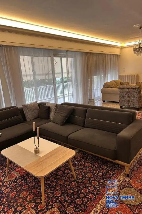 Βούλα ενοικιάζεται ανακαινισμένο και πλήρως επιπλωμένο και εξοπλισμένο διαμέρισμα στον 1ο όροφο συνολικής επιφάνειας 180.00 τ.μ. τιμη 2900 χωρις επιπλα 2100, Περιλαμβάνει άνετο σαλόνι με τζάκι, λειτουργική κουζίνα, 3 υπνοδωμάτια (το ένα master), δύο μπάνια