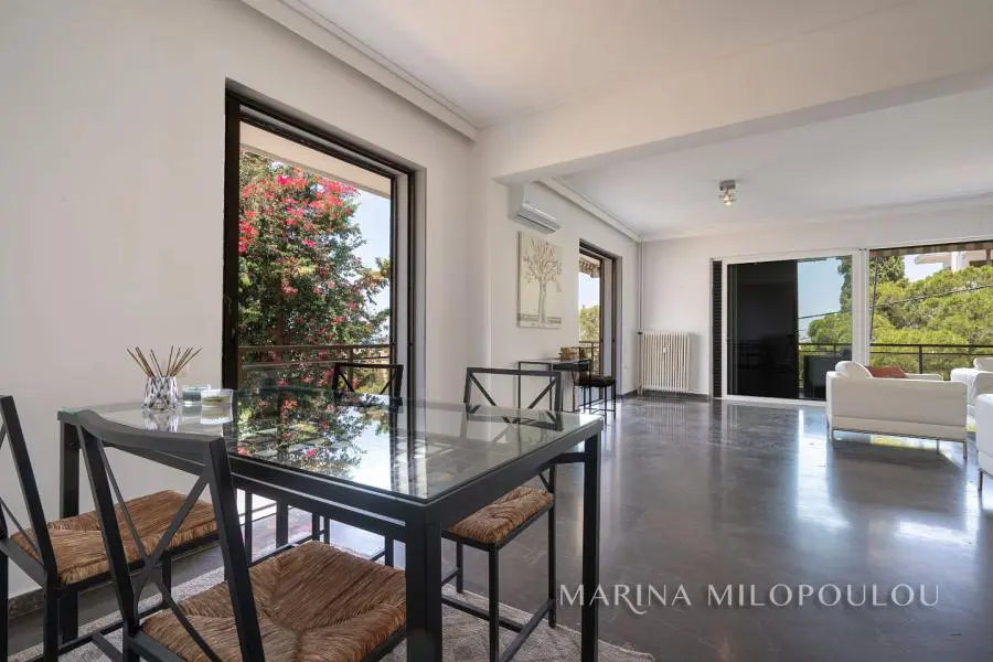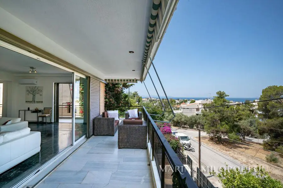 ΒΟΥΛΑ - Πηγαδάκια, οροφοδιαμέρισμα 2ου ορόφου, επιφανείας 145 τμ, στα σύνορα με Βουλιαγμένη και πολύ καλή θέα θάλασσας. Άνετος χώρος υποδοχής με τζάκι - τραπεζαρία, χωριστή κουζίνα με ηλεκτρικές συσκευές, 3 μεγάλα υ/δ, 1 γραφείο, 2 μπάνια, μεγάλες βεράντες περιμετρικά. Διαθέτει ασανσέρ, μαρμάρινα δάπεδα στους κυρίως χώρους, δρύινα στα υπνοδωμάτια, αυτονομία θέρμανσης πετρελαίου ανά χώρο, 3 A/Cs, διπλά τζάμια στο χώρο υποδοχής, 2 πατάρια επάνω από τα μπάνια, αποθήκη ισογείου 2 τμ,1 θέση στάθμευσης στον ακάλυπτο χώρο. Αποτελεί μέρος 4όροφου καλοδιατηρημένου κτιρίου με συνολικά 4 ιδιοκτησίες και όμορφο περιβάλλοντα χώρο. Κοινόχρηστα περ 40€. Δίδεται ημι-επιπλωμένο ή άδειο. Εξαιρετική θέση ακινήτου σε υψομετρικό σημείο, με αμεσότητα πρόσβασης σε πευκόφυτο λόφο, δίνοντας έντονη αίσθηση της εξοχής, με απόλυτη ησυχία, μόλις 850 μέτρα από την θάλασσα. Απόσταση 800 μέτρα από την Λεωφ. Ευελπίδων 1,3 χλμ από την οργανωμένη παραλία του Apollon Beach Hotel στο Καβούρι, 2 χλμ από την πλατεία της Βούλας, 3 χλμ από την Βουλιαγμένη και από την Βάρκιζα, 5 χλμ από τον εμπορικό ιστό της Γλυφάδας και 18 χλμ από το αεροδρόμιο. Αποκλειστικό ακίνητο.