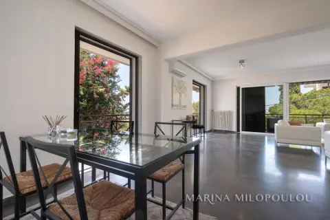 ΒΟΥΛΑ - Πηγαδάκια, οροφοδιαμέρισμα 2ου ορόφου, επιφανείας 145 τμ, στα σύνορα με Βουλιαγμένη και πολύ καλή θέα θάλασσας. Άνετος χώρος υποδοχής με τζάκι - τραπεζαρία, χωριστή κουζίνα με ηλεκτρικές συσκευές, 3 υ/δ, 1 γραφείο, 2 μπάνια, μεγάλες βεράντες περιμετρικά. Διαθέτει ασανσέρ, μαρμάρινα δάπεδα στους κυρίως χώρους, δρύινα στα υπνοδωμάτια, αυτονομία θέρμανσης πετρελαίου ανά χώρο, 3 A/Cs, διπλά τζάμια στο χώρο υποδοχής, 2 πατάρια επάνω από τα μπάνια, αποθήκη ισογείου 2 τμ,1 θέση στάθμευσης στον ακάλυπτο χώρο. Αποτελεί μέρος 4όροφου καλοδιατηρημένου κτιρίου με συνολικά 4 ιδιοκτησίες και όμορφο περιβάλλοντα χώρο. Τιμή ζώνης 2400€. Κοινόχρηστα περ 40€. Εξαιρετική θέση ακινήτου σε υψομετρικό σημείο, με αμεσότητα πρόσβασης σε πευκόφυτο λόφο, δίνοντας έντονη αίσθηση της εξοχής, με απόλυτη ησυχία, μόλις 850 μέτρα από την θάλασσα. Απόσταση 800 μέτρα από την Λεωφ. Ευελπίδων 1,3 χλμ από την οργανωμένη παραλία του Apollon Beach Hotel στο Καβούρι, 2 χλμ από την πλατεία της Βούλας, 3 χλμ από την Βουλιαγμένη και από την Βάρκιζα, 5 χλμ από τον εμπορικό ιστό της Γλυφάδας και 18 χλμ από το αεροδρόμιο.