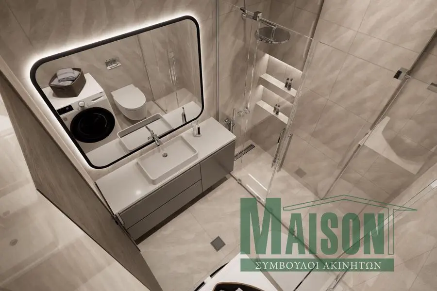 Πωλείται στον Άγιο Δημήτριο οροφοδιαμέρισμα 101 τ.μ., 4ου ορόφου, υπό κατασκευή- θα παραδοθεί ολοκληρωμένο και με τα κλειδιά στο χέρι. Διαθέτει 2 υπνοδωμάτια- εκ των οποίων το ένα master- με walk in ντουλάπες έκαστο, 2 κομπλέ λουτρά, 1 open plan κουζίνα, 1 ενιαία τραπεζαρία/ καθιστικό, αυτόνομη θέρμανση φυσικού αερίου, ενεργειακά κουφώματα αλουμινίου με σίτες, δάπεδα πλακάκι, πόρτα ασφαλείας, μεγάλες βεράντες, 1 θέση στάθμευσης στην πιλοτή και 1 αποθήκη 10 τ.μ. Το κτήριο είναι minimal μοντέρνας αισθητικής με άριστης ποιότητας δομικά υλικά σε ήσυχη γειτονιά του Αγίου Δημητρίου με ανοιχτάδα μπροστά. Απέχει 2 χλμ. από το μετρό και μόλις 3 χλμ. από την κοντινότερη παραλία. Τιμή 350.000 ευρώ