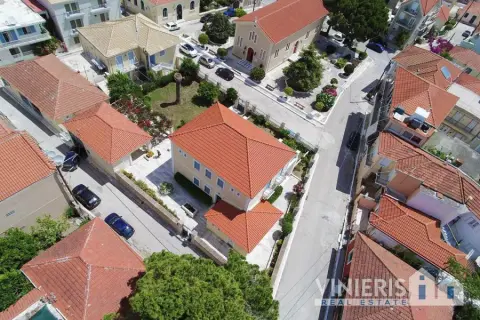 Στο κέντρο του Ληξουρίου, σε μία στρατηγική τοποθεσία σας παρουσιάζουμε αυτό μοναδικό κτίριο με άψογη κατασκευή και με υψηλής ποιότητα υλικά. Αυτό το καταπληκτικό αρχοντικό έχει εμβαδόν 240τ.μ., με μια αποθήκη και ένα παρκινγκ 71τ.μ. σε ένα οικόπεδο συνολικής επιφάνειας 761τ.μ. Η ιδιοκτησία αποτελεί ένα πραγματικό κεφαλλονίτικο αρχιτεκτονικό αριστούργημα και αποτελείται από 2 επίπεδα. Στο πρώτο επίπεδο συναντάμε ένα ευρύχωρο και φωτεινό καθιστικό με μπαλκονόπορτες που οδηγούν στον εξωτερικό χώρο και με ένα τζάκι σε δεσπόζουσα θέση. Στο ίδιο επίπεδο διατίθεται και μία κουζίνα, ένας χώρος γραφείου καθώς και ένα μπάνιο. Μέσω μίας αρχοντικής ξύλινης σκάλας με πανέμορφες λεπτομέρειες οδηγούμαστε στο 1ο επίπεδο όπου συναντάμε, τρία πολύ ευρύχωρα υπνοδωμάτια με το καθένα να προσφέρει ιδιωτικό μπάνιο και εντοιχισμένες ντουλάπες. Ο εξωτερικός χώρος είναι πραγματικά εξαιρετικός, με εκπληκτική θέα στη θάλασσα. Στο πίσω μέρος, υπάρχει είσοδος σε ένα ιδιωτικό πάρκινγκ, ενώ από πάνω υπάρχει μια αποθήκη. Η συγκεκριμένη ιδιοκτησία λόγω της στρατηγικής της θέσης, θεωρείται ιδανική επενδυτική πρόταση για όποιον επιθυμεί να αποκτήσει μια παραδοσιακή Κεφαλλονίτικη κατοικία, αλλά και για οποιαδήποτε τουριστική εκμετάλλευση.