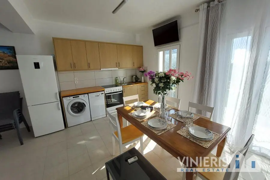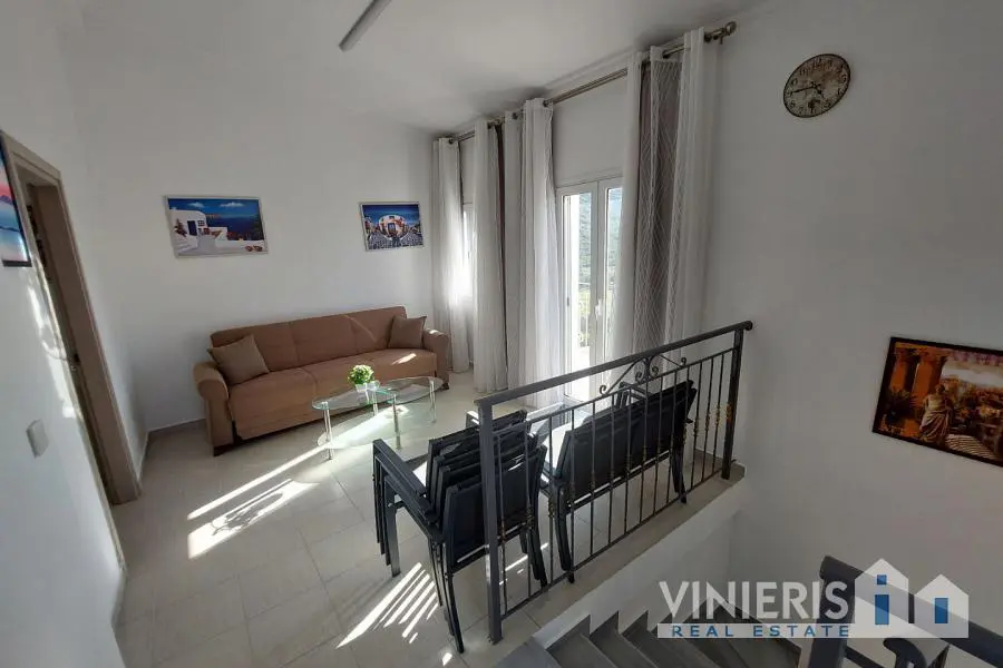 Με υπέροχη θέα στο βουνό αλλά και το γαλήνιο γαλάζιο του Ιονίου, πωλείται αυτή η καταπληκτική διώροφη βίλα στο χωριό Μηνιές στο Δήμο Λειβαθούς. Σε πολύ μικρή απόσταση από τις αμμώδης παραλίες του χωριού η βίλα αυτή βρίσκεται περιτριγυρισμένη από το ανυπέρβλητο φυσικό τοπίο της περιοχής και είναι έτοιμη να σας υποδεχθεί για να δημιουργήσετε τις δικές σας αναμνήσεις από μοναδικές στιγμές. Το κτίριο χωρίζεται σε 3 επίπεδα. Η κεντρική κατοικία αποτελείται από 2 ορόφους όπου στο πρώτο όροφο συναντάμε μια ευρύχωρη ενιαία κουζίνα/καθιστικό και τρία υπνοδωμάτια τα δύο με en suite μπάνια και μεγάλα μπαλκόνια με θέα το καταπληκτικό πράσινο. Στο δεύτερο όροφο όπου συνδέεται με μία εσωτερική μαρμάρινη σκάλα συναντάμε ένα μικρό αλλά φωτεινό καθιστικό με ένα μπαλκόνι που έχει θέα το χωρίο και τη θάλασσα και ένα υπνοδωμάτιο με en suite μπάνιο. Το κατώτερο επίπεδο αποτελείται από έναν ξενώνα με ένα ενιαίο χώρο κουζίνα δωμάτιο και ένα ευρύχωρο μπάνιο. Ο εξωτερικός χώρος της βίλας διαθέτει μια μεγάλη πλακόστρωτη αυλή και μια υπέροχη πισίνα για τις απόλυτες στιγμές χαλάρωσης το καλοκαίρι. Το κτίριο είναι κατάλληλο, τόσο για μόνιμη διαμονή όσο και για διακοπές, αλλά αποτελεί και ιδανική επενδυτική πρόταση.