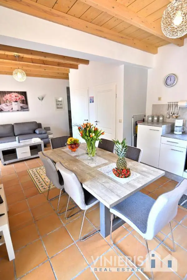 Στα Καλλιγάτα, ένα γραφικό χωριό με στενά σοκάκια και παραδοσιακά σπίτια, στην περιοχή της Λειβαθούς, νότια του Αργοστολίου και κοντά στο αεροδρόμιο, διατίθεται προσ πώληση αυτή η εντυπωσιακή βίλα 210,64 τ.μ. σε οικόπεδο 1.499,96 τ.μ. Η τοποθεσία της είναι εξαιρετική, καθώς απέχει ελάχιστα από τις δημοφιλείς αμμώδεις παραλίες Άμμες, Άβυθος και Άη Χέλης. Η πανέμορφη αυτή ιδιοκτησία αποτελείται από τρία διαμερίσματα, τα οποία μπορούν να λειτουργούν ανεξάρτητα, με τη δυνατότητα σύνδεσης μεταξύ των επιπέδων μέσω εσωτερικής σκάλας. Το ισόγειο διαμέρισμα, 62,33 τ.μ., περιλαμβάνει ένα ευρύχωρο και φωτεινό καθιστικό, μια κουζίνα, ένα μεγάλο υπνοδωμάτιο και ένα μπάνιο. Οι μεγάλες μπαλκονόπορτες του προσφέρουν πρόσβαση σε ένα σκεπαστό μπαλκόνι με μαγευτική θέα στο Ιόνιο Πέλαγος και στην όμορφα διακοσμημένη αυλή. Το διαμέρισμα του πρώτου ορόφου, 65,53 τ.μ., διαθέτει ευρύχωρο σαλόνι, κουζίνα, ένα κύριο υπνοδωμάτιο, ένα μικρότερο υπνοδωμάτιο και μπάνιο. Το μπαλκόνι του προσφέρει θέα στον κήπο με την πισίνα και στη θάλασσα του Ιονίου. Το υπόγειο διαμέρισμα περιλαμβάνει επίσης σαλόνι, κουζίνα, ένα υπνοδωμάτιο και μπάνιο, προσφέροντας όλες τις ανέσεις που χρειάζεται κάποιος για άνετη διαμονή. Ο κήπος της βίλας αποτελεί πραγματικό στολίδι, με υπέροχα φυτά και δέντρα που προσφέρουν στιγμές χαλάρωσης και ιδιωτικότητας. Η πισίνα είναι ιδανική για ατελείωτες στιγμές δροσιάς κατά τη διάρκεια των καλοκαιρινών μηνών. Η εξαιρετική τοποθεσία της και οι άριστες παροχές την καθιστούν μοναδική επενδυτική ευκαιρία με μεγάλες προοπτικές απόδοσης.