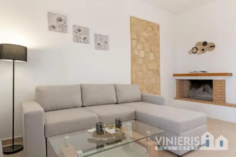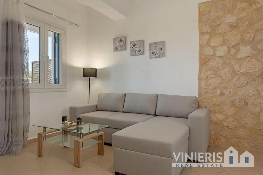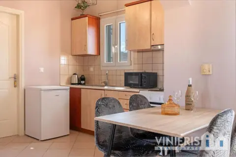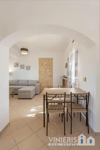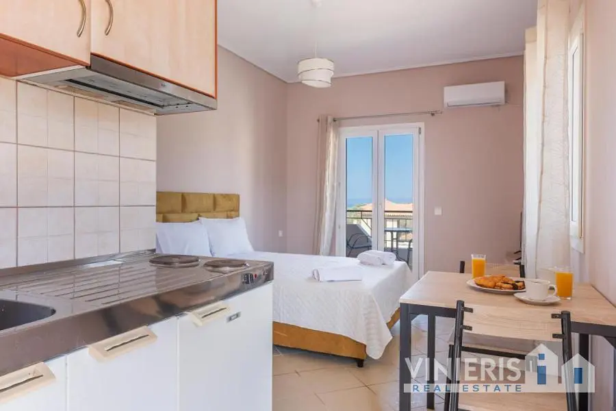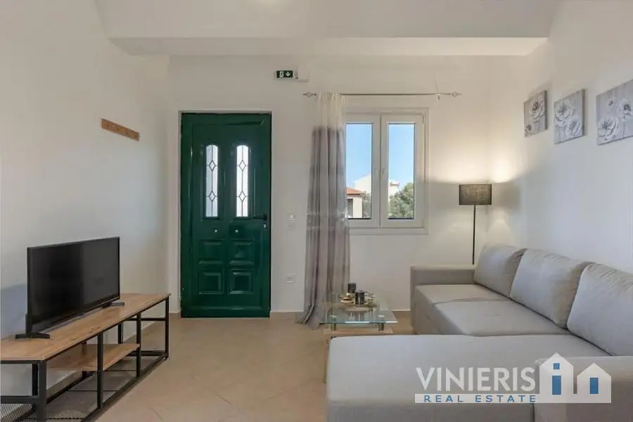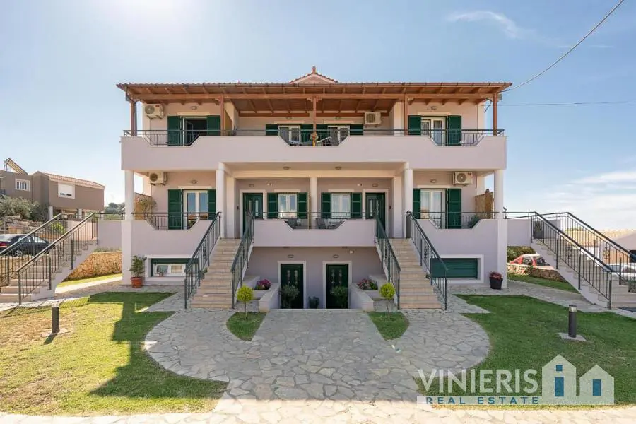 Στο πανέμορφο χωριό Μηνιές, σε μια άκρως προνομιακή θέση, μόλις μερικά λεπτά μακριά από τις αμμώδης παραλίες της περιοχής, Σπάσματα, Μεγάλη Αμμος, Εγλίνα κ.ά., και τις παραδοσιακές ταβέρνες του χωριού, διατίθεται προς πώληση συγκρότημα 6 διαμερισμάτων 3 επιπέδων συνολικού εμβαδού 372 τ.μ. Σε κάθε επίπεδο συναντάμε από 2 πλήρως εξοπλισμένα διαμερίσματα τα οποία αποτελούνται από έναν ενιαίο χώρο κουζίνας-καθιστικού, ένα 1 υπνοδωμάτιο και μπάνιο. Ενώ υπάρχουν 2 διαμερίσματα με υπέροχο τζάκι και ένα δεύτερο υπνοδωμάτιο. Όλα τα διαμερίσματα έχουν πρόσβαση σε μπαλκόνια με θέα τον κήπο της ιδιοκτησίας και την θάλασσα της περιοχής. Εξωτερικά η ιδιοκτησία περιβάλλεται από έναν μεγάλο πλακόστρωτο κήπο με καταπράσινο γκαζόν και μια μεγάλη πετρόχτιστη μάντρα να στολίζει τον χώρο. Το παρόν ακίνητο αποτελεί μοναδική επενδυτική ευκαιρία με μεγάλες απολαβές ενώ δίνεται πλήρως επιπλωμένο και εξοπλισμένο για άμεση εκμετάλλευση από τον νέο ιδιοκτήτη.